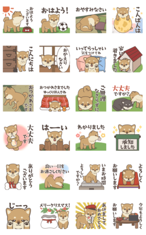 ぽてぽて歩く、柴犬の子犬のスタンプです。敬語&普段使いしやすい言葉を集めました♪DECOR より発売