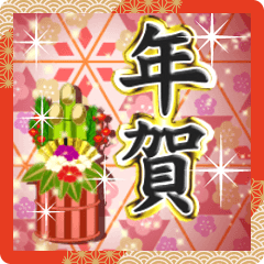 金文字が飛び出る勢いで拡大ループするデカ文字を中心に謹賀新年など年末年始にインパクトある冬向け和風のポップアップスタンプです(あけおめスタンプ2024対象)