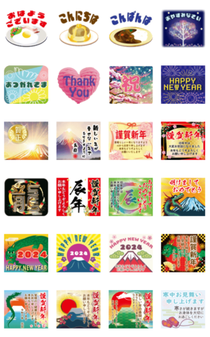 背景が動く2024年の年賀状 スタンプ画像一覧