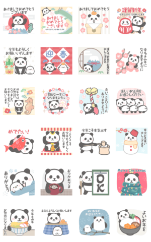 年末年始、正月に使えるパンダンミニの飛び出すスタンプです。大晦日/クリスマス/挨拶/冬/丁寧/かわいい/敬語/新年/日常/辰/たつ/干支(あけおめスタンプ2024対象)なかむら けんたろう より発売