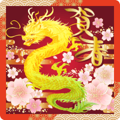 花びら舞う2024はなやぐ黄金龍の美麗年賀状 スタンプ情報