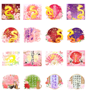 花びら舞う2024はなやぐ黄金龍の美麗年賀状 スタンプ画像一覧