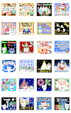 光のネコ☆お正月☆Xmas☆飛び出す! スタンプ画像一覧