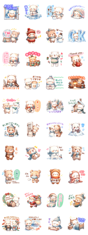いろんなクマさんを集めた冬のスタンプです。 (熊(くま)・日常・挨拶・敬語・クリスマス・大晦日・お正月)Miho Kurosu より発売