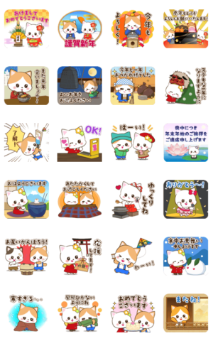 昭和レトロな猫ちゃんの冬【年末年始】 スタンプ画像一覧