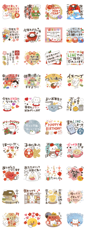 毎年使えるお正月スタンプです♪ 年末年始、クリスマス、誕生日、寒中見舞い、くま、挨拶、敬語など(あけおめスタンプ2024対象)yopink より発売
