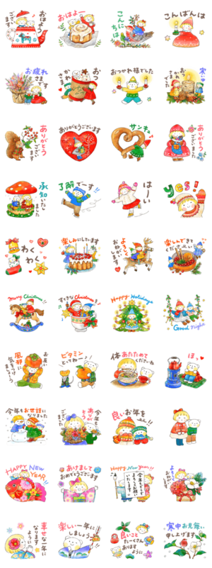 年末年始のご挨拶にピッタリ!クリスマスやお正月、冬の楽しいモチーフがいっぱい詰まった敬語多めのスタンプです♪