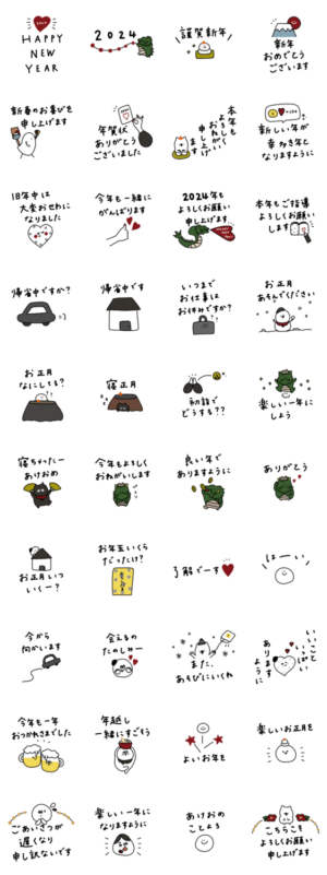 大人でも使いやすいシンプルにまとめたお正月スタンプです。シンプルだけどお洒落。大晦日。お正月。冬。(あけおめスタンプ2024対象)mame mametaro より発売