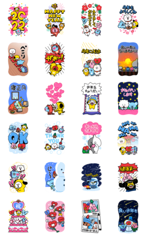 ユニバースターBT21が2022年の幕開けを賑やかにお祝い!冬シーズンや年末年始のあいさつに使いやすいスタンプが盛りだくさん♪販売期間:2022/1/31までBT21 より発売