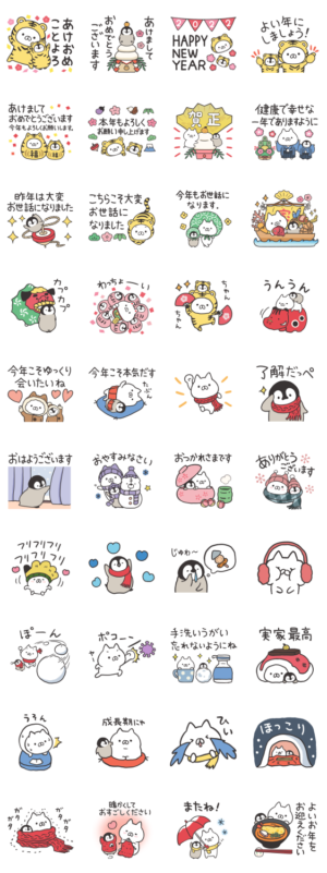 ねこくんとぺんちゃんのほっこりお正月気分に癒されるあけおめスタンプが登場♪販売期間:2022/1/31までもじじ より発売