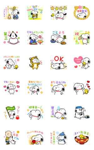 お正月に使えるスタンプの中でもスヌーピーは誰もが知ってるキャラクターで使いやすいです。