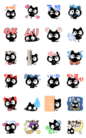 画面いっぱいに飛び出す『クロネコすたんぷ』。かわいく動く毎日便利で目立つ黒猫。可愛いくろねこ好きな方にぜひ。【かたこ】アニメーション・ポップアップ・とびだすかたこ より発売
