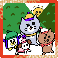BIGスタンプで祝う灰色キャットと仲間たちのお正月。今年もみんな仲良く元気に過ごそうね。来年も再来年もずっと使えるよ。あけおめ/年賀状(あけおめスタンプ2024対象)
