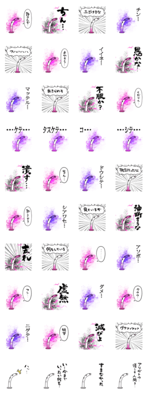 闇落ちしたチンアナゴのスタンプです。イライラや怒りを表す時や怖いホラー的な雰囲気にしたい時とか中二病の方や煽りやケンカしたい時とかクリスマス前後とかにどうぞ。オカヤマ より発売