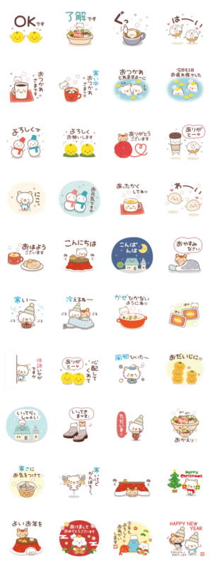 冬シーズンに使えるほっこりとしたやさしいスタンプです。 〜冬・クリスマス・年末年始・年賀・正月・日常〜かりん より発売