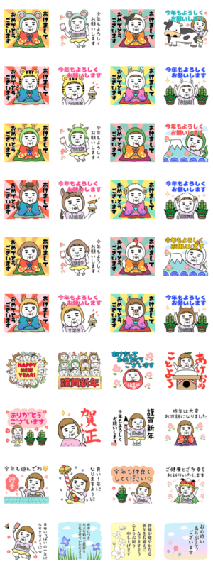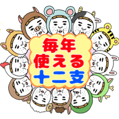 憎めないブスの年末年始、毎年使える干支ver.。新年,年末年始,大晦日,お正月,年賀スタンプ!ブサイクだけど愛嬌があるネタスタンプの再販です!子丑寅卯辰巳午未申酉戌亥!