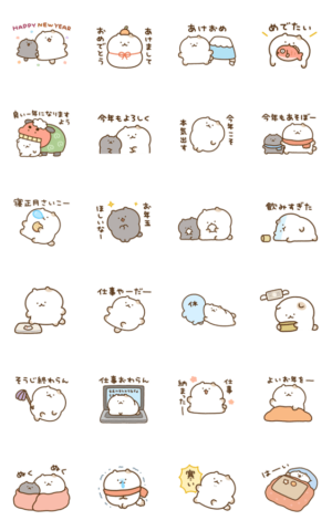 ねこがんばらないお正月(うごく) スタンプ画像一覧