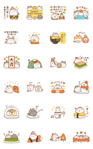 『ずんどうネコ』のお正月にぴったりなアニメーションスタンプです※2021年に発売した「激しくうごくずんどうネコ3 (あけおめ)」を修正リメイクした再販になります※