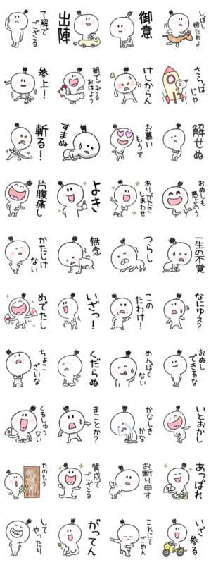 武士語を喋るまるころです。ゆるくて使いやすい、お侍さんになった、まるころスタンプです。Brody Machine より発売