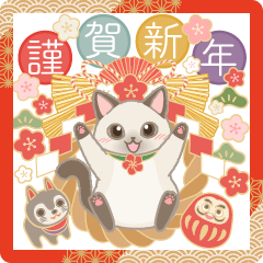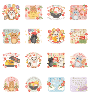 はぴきゃとの毎年使える年末年始ポップアップスタンプ!可愛く飛び出す猫たちがお祝いします!家族 友人 目上の方にもOK (挨拶 年賀状 お正月 謹賀新年 寒中見舞い 喪中)(あけおめスタンプ2024対象)mayurimu より発売