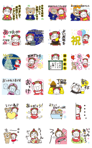 期間限定スタンプのremixバージョン。画面いっぱいに飛び出すポップアップスタンプ。クリスマス、お正月、年末年始, 年賀状。