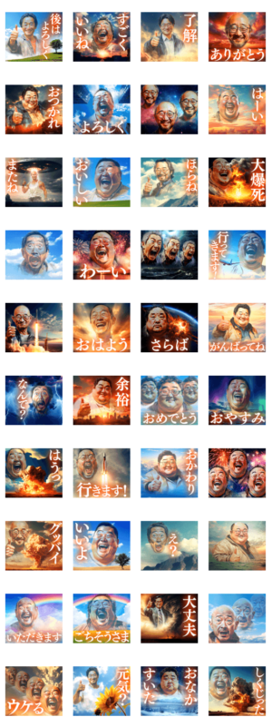 空に映る中年男性のスタンプです。Da-soft より発売