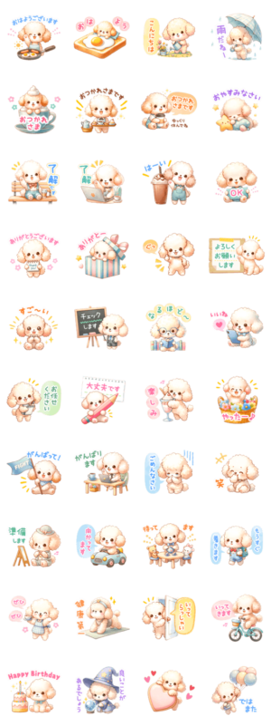 いろんなトイプードルを集めた詰め合わせスタンプです♪ (犬・日常・挨拶・敬語・気づかい)Miho Kurosu より発売