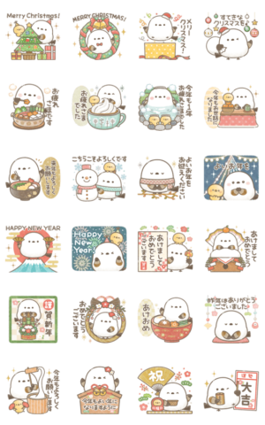 飛び出す!シマエナガさん。*お正月&Xmas スタンプ画像一覧