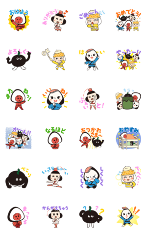 おにぎり好き必見! かわいいおにぎりのキャラクター「ニギリンジャー」たちのスタンプです。おともだちとの会話で使いやすい言葉を集めました。ぜひ使ってみてね!