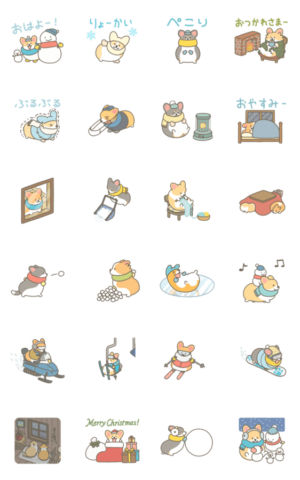 コーギー犬の動く冬スタンプです。庭駆け回りたい雪の季節にコギの成分が欲しくなったらお使いください。