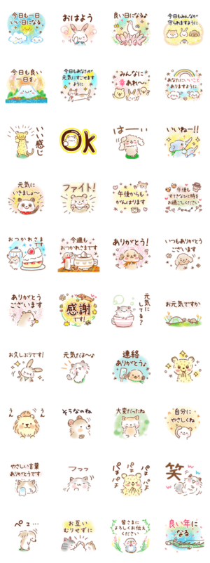 相手にやさしく温かい言葉を届ける、動物たちのスタンプセットです。 ~思いやり・あいさつ・丁寧・敬語~ようこ より発売
