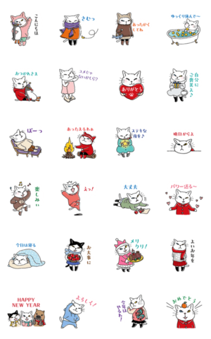 クリスマスやお正月など、冬に使えるオッドアイの白猫「アンジー」のスタンプ登場!ほっこり会話を盛り上げます♪