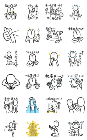 めでたいとき。嬉しいとき。感謝を伝えたいとき。そんな折々のハッピーに、お前と俺とでことほぎあえるスタンプです。ポテ豆 より発売