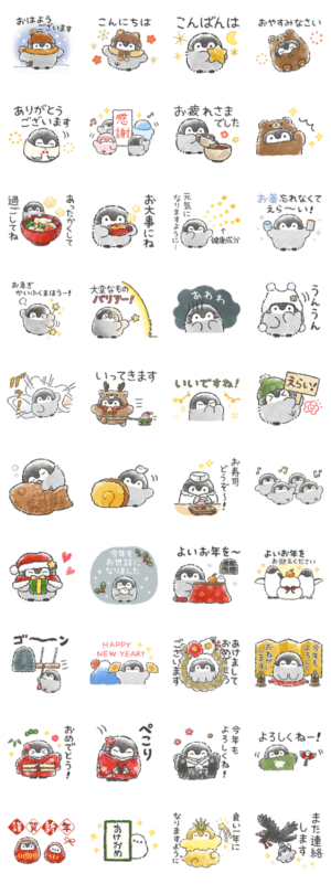 コウペンちゃんと冬の日常を楽しむスタンプです。 クリスマス、年末年始、お正月にもおすすめです!るるてあ より発売