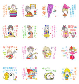 亜土ちゃんの辰年お正月スタンプが登場だよ♪お世話になった方へのご挨拶や新年のはじまりにぴったりのスタンプです。ネオス株式会社 より発売