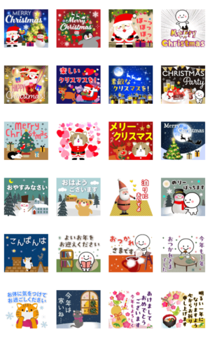 こちらは修正版です。クリスマスに毎年使えるかわいくておしゃれなメッセージがいっぱい。年末の挨拶、お正月の年賀状まで飛び出すスタンプでインパクト大!