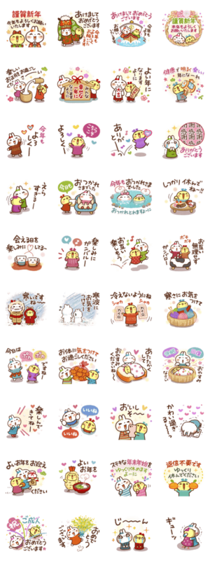ずっと使える年末年始✨「白うさぎさん」 スタンプ画像一覧