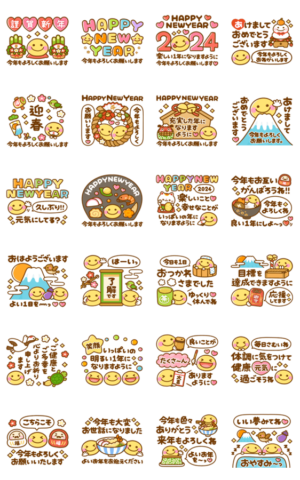 にこにこ笑顔がいっぱい♡長文で気持ち伝わる♡大人可愛いスマイルで新年を明るく彩ります。画面いっぱいに飛び出すポップアップスタンプです♪お正月♡あけおめ♡年末年始(あけおめスタンプ2024対象)ぴよたぬき♡ より発売
