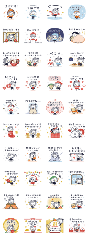 【敬語】冬&年末年始♡ゆるボブGIRL スタンプ情報