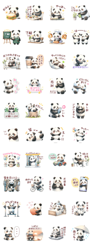 いろんなテイストのパンダを集めた詰め合わせスタンプです。 (日常・挨拶・敬語・気づかい)Miho Kurosu より発売