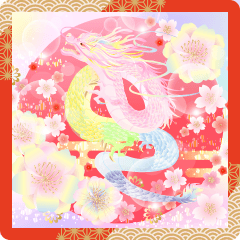 7色の龍が飛び出す、新年の挨拶に使えるおしゃれで華やかなお正月スタンプ。運気の上がるといわれているオーロラカラーをふんだんに取り入れた他にはない美しいデザイン。(あけおめスタンプ2024対象)mayurimu より発売