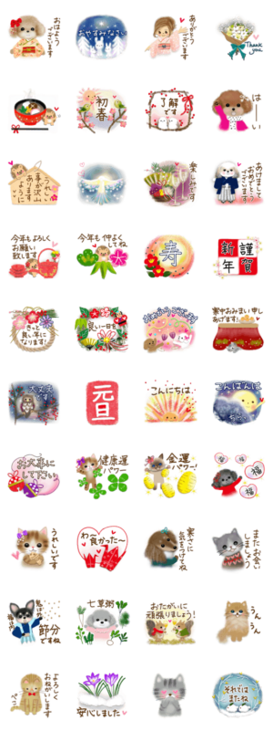 新年のスタンプですが、お正月あけからも、ずっと使える便利なセットです。(あけおめスタンプ2024対象)メルテュード より発売