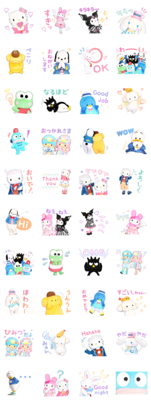 サンリオキャラクターが勢ぞろいで、使うのが楽しみなスタンプです。