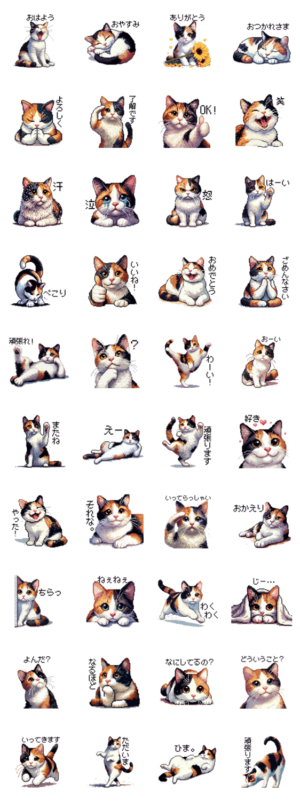 ドット絵 三毛猫 猫 日常会話 40種 スタンプ画像一覧