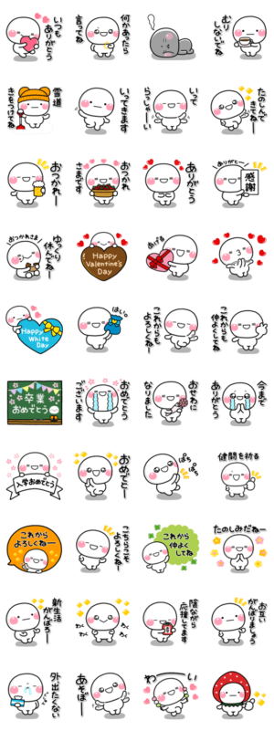 しろまるの毎年春まで使えるスタンプを集めました。ずっと使える内容を厳選し作成しました。【作:いしいともこ】