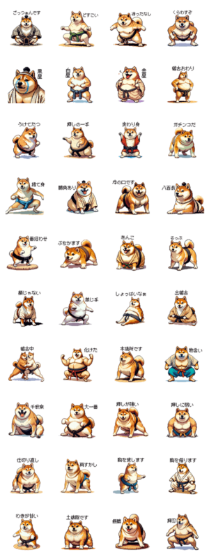 ドット絵 力士な柴犬 相撲 40種 スタンプ画像一覧
