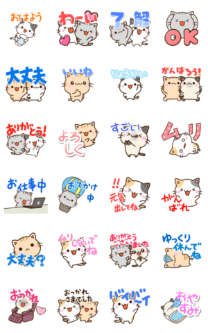 LINEマンガの『ちびネコ』シリーズの『ちびトラ』『ちびミケ』たちの飛び出すねこスタンプ。『5匹のちび猫』のポップアップ、動くアニメーションスタンプです。【かたこ】かたこ より発売