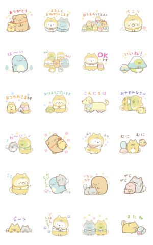 新しいすみっコシリーズのスタンプ嬉しいです!わんわんコスプレのすみっコたち、可愛くて本当になごみます。