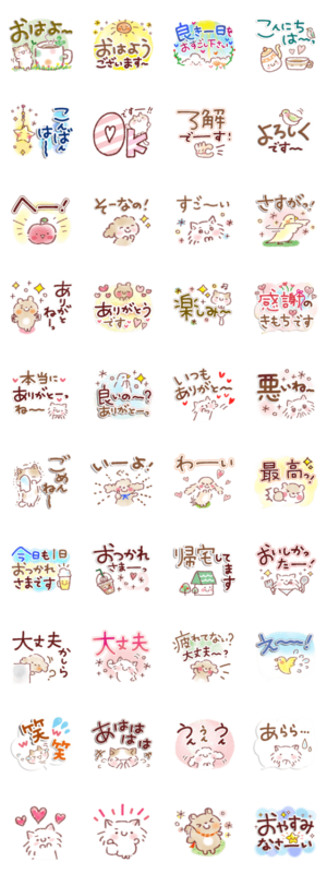 仲の良い方・家族など、かたくなりすぎずに一言添えたい言葉・あいさつが入ったセットです。文字大きめLサイズ♪~感謝/励まし/あいづち/御礼~