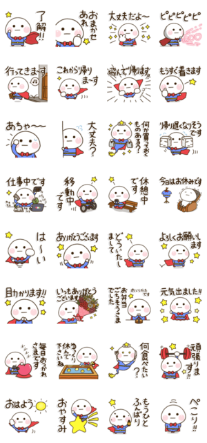 家族のための頑張るお父さん達(祖父,パパ,おとん)の毎日に使いやすい連絡スタンプ。気持ちはいつだってスーパーヒーローでござるbyだいふくまる